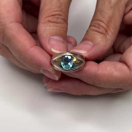 Sterling Silver Blue Topaz Ring – Modernist Oval Cut Bold Statement Band