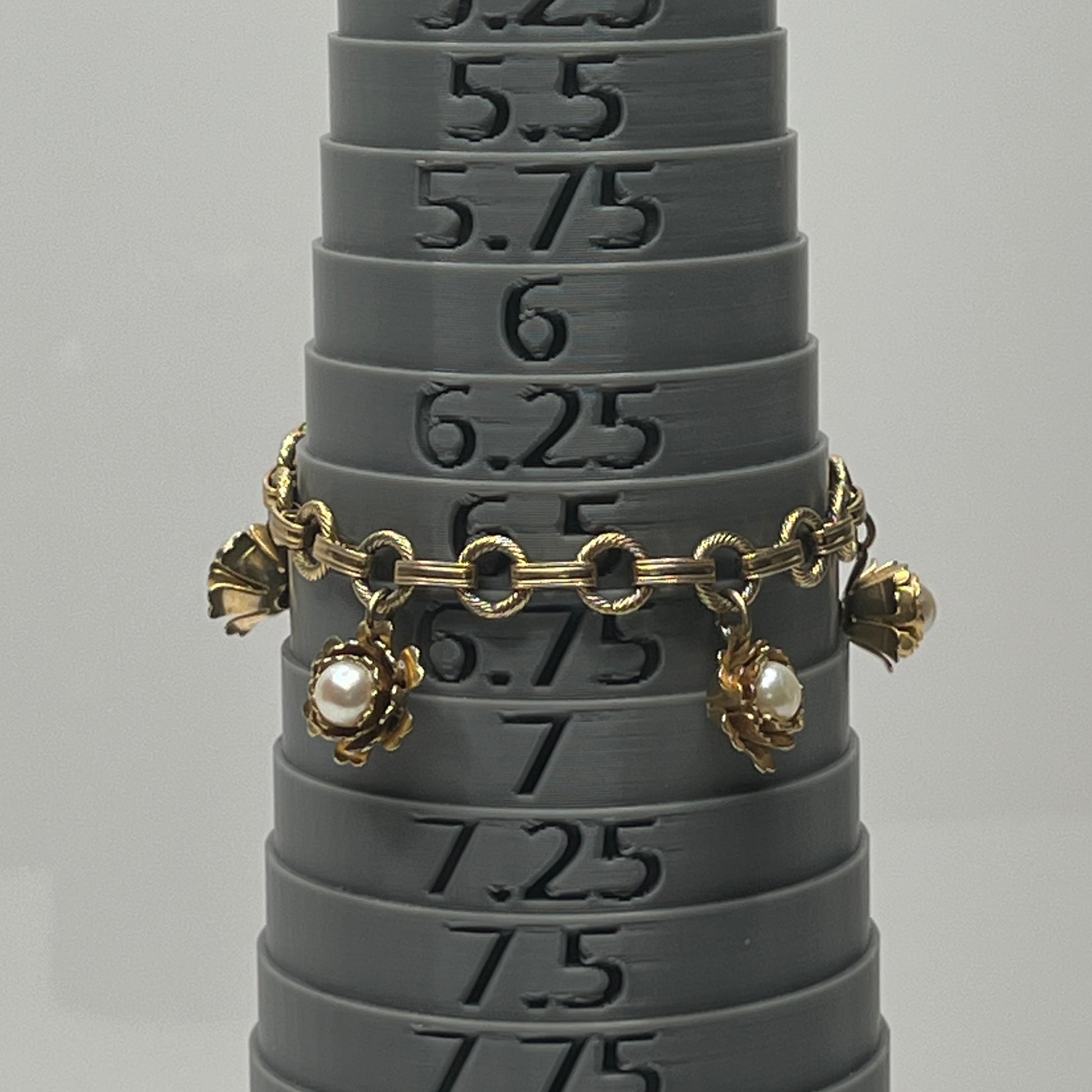 Gold-Tone Rose Charm Bracelet – Mid Century – Faux Pearl Buds